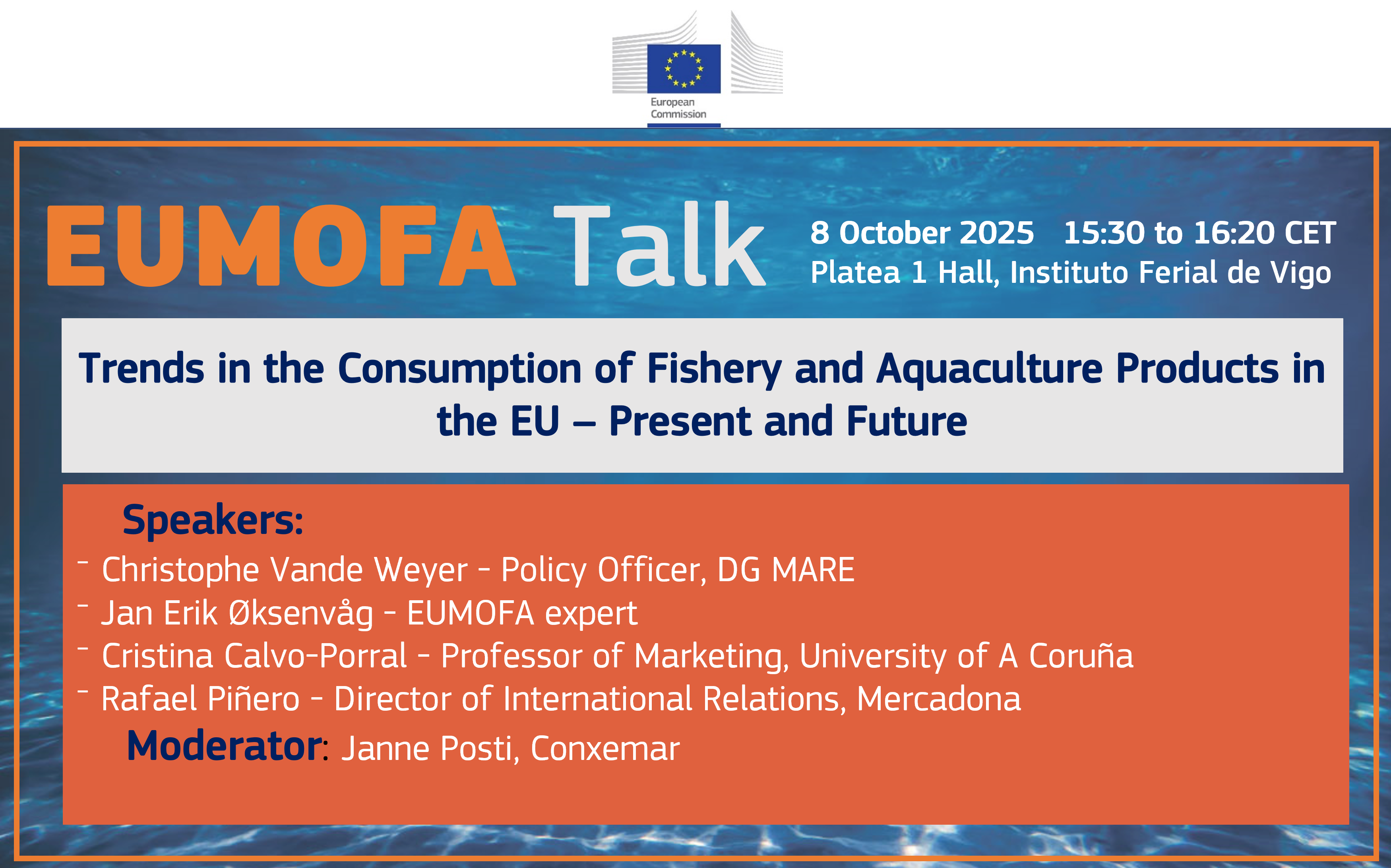 EUMOFA held the Talk “Trends in the Consumption of Fishery and Aquaculture Products in the EU – Present and Future” on Wednesday, 8 October 2025 at the Platea stage of the Conxemar Exhibition.